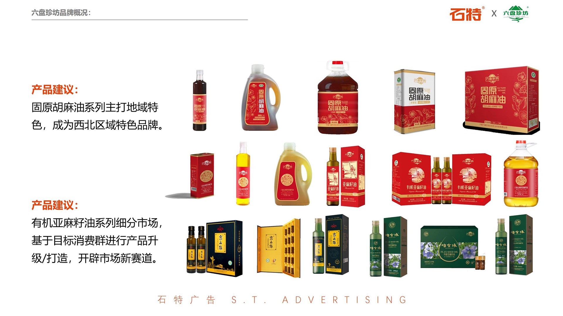 六盤珍坊找到石特廣告,希望我們能幫助他它進(jìn)行品牌升級(jí),就這樣,石特廣告攜手六盤珍坊開啟了品牌升級(jí)之路!十年砥礪奮進(jìn)讓六盤珍坊在亞麻籽油行業(yè)占領(lǐng)了一席之地,2022年,六盤珍坊將進(jìn)入一個(gè)新的發(fā)展階段,想要實(shí)現(xiàn)品牌升級(jí),在大健康領(lǐng)域規(guī)劃新的產(chǎn)業(yè)布局,占領(lǐng)重要高地。