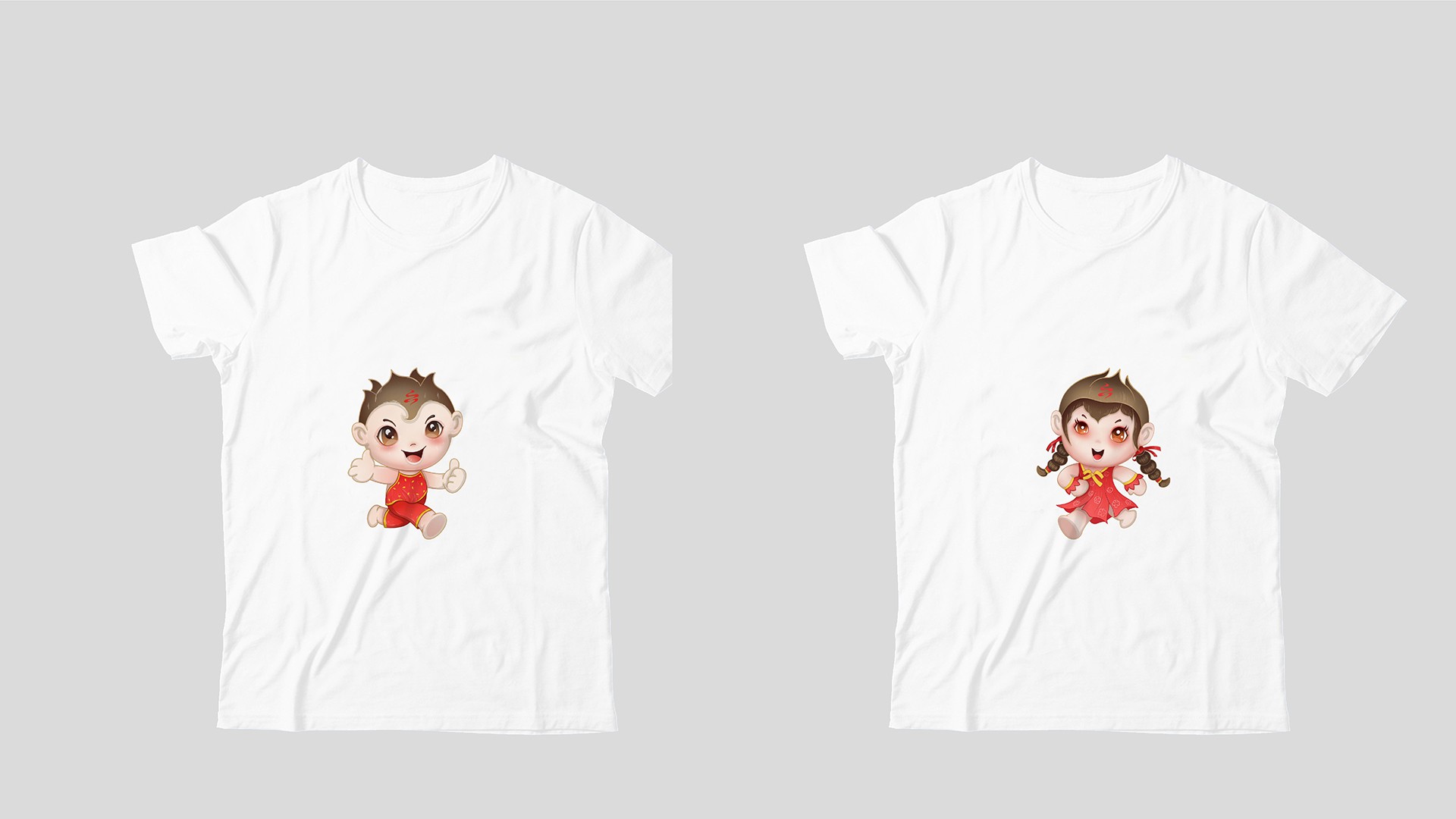 2、地域特征:從面貌出發(fā),為冷娃的填充緋紅的臉頰,凸顯高原地勢(shì);并給男娃設(shè)計(jì)紅肚兜以體現(xiàn)西北特色。
