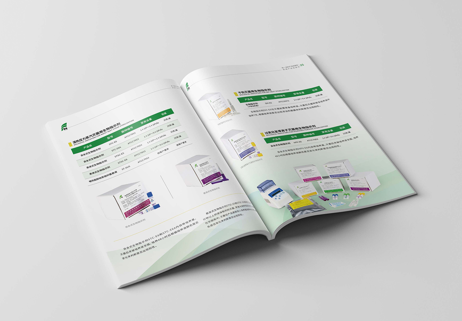 作為一家專業(yè)從事滅菌效果監(jiān)測產(chǎn)品研發(fā)、制造和銷售的高科技企業(yè),對其企業(yè)宣傳冊的品質(zhì)有高標(biāo)準(zhǔn)要求。為使得宣傳冊滿足企業(yè)的高標(biāo)準(zhǔn)要求,發(fā)揮更好的宣傳效果,石特在對企業(yè)作了全面了解后,展開設(shè)計。在封面頁部分,以消毒的實用性場景及相關(guān)器皿用具,體現(xiàn)其專業(yè)性,也能讓受眾在第一時間明確企業(yè)屬性;在內(nèi)容上,從不同角度對企業(yè)展開介紹,內(nèi)容連貫,可讀性高;在顏色上,以綠色為主色調(diào),一方面綠色代表“安全”“環(huán)保”“希望”等含義,與企業(yè)屬性契合,另一方面也與企業(yè)logo顏色呼應(yīng),宣傳更具統(tǒng)一性。畫冊通篇,圖文結(jié)合,主次有序,重點突出,全面展示了富捷消毒用品有限公司綜合實力。