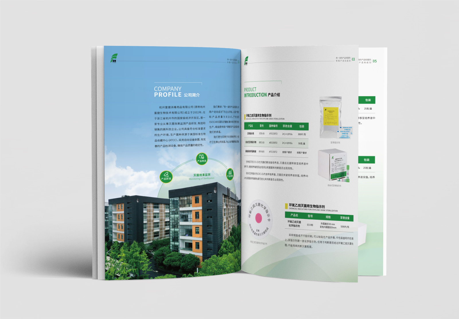 杭州富捷消毒用品有限公司成立于2002年,位于浙江省杭州市的國家級經(jīng)濟(jì)開發(fā)區(qū),是一家專業(yè)從事滅菌效果監(jiān)測產(chǎn)品研發(fā)、制造和銷售的高科技企業(yè)。公司具備符合標(biāo)準(zhǔn)要求的生產(chǎn)環(huán)境,生產(chǎn)菌種來源于美國標(biāo)準(zhǔn)生物品收題中心(ATCC),采用自動設(shè)備染菌,有完善的產(chǎn)品檢測設(shè)備,確保產(chǎn)品質(zhì)量的穩(wěn)定性。現(xiàn)公司有宣傳冊設(shè)計的需求,特此找到石特。