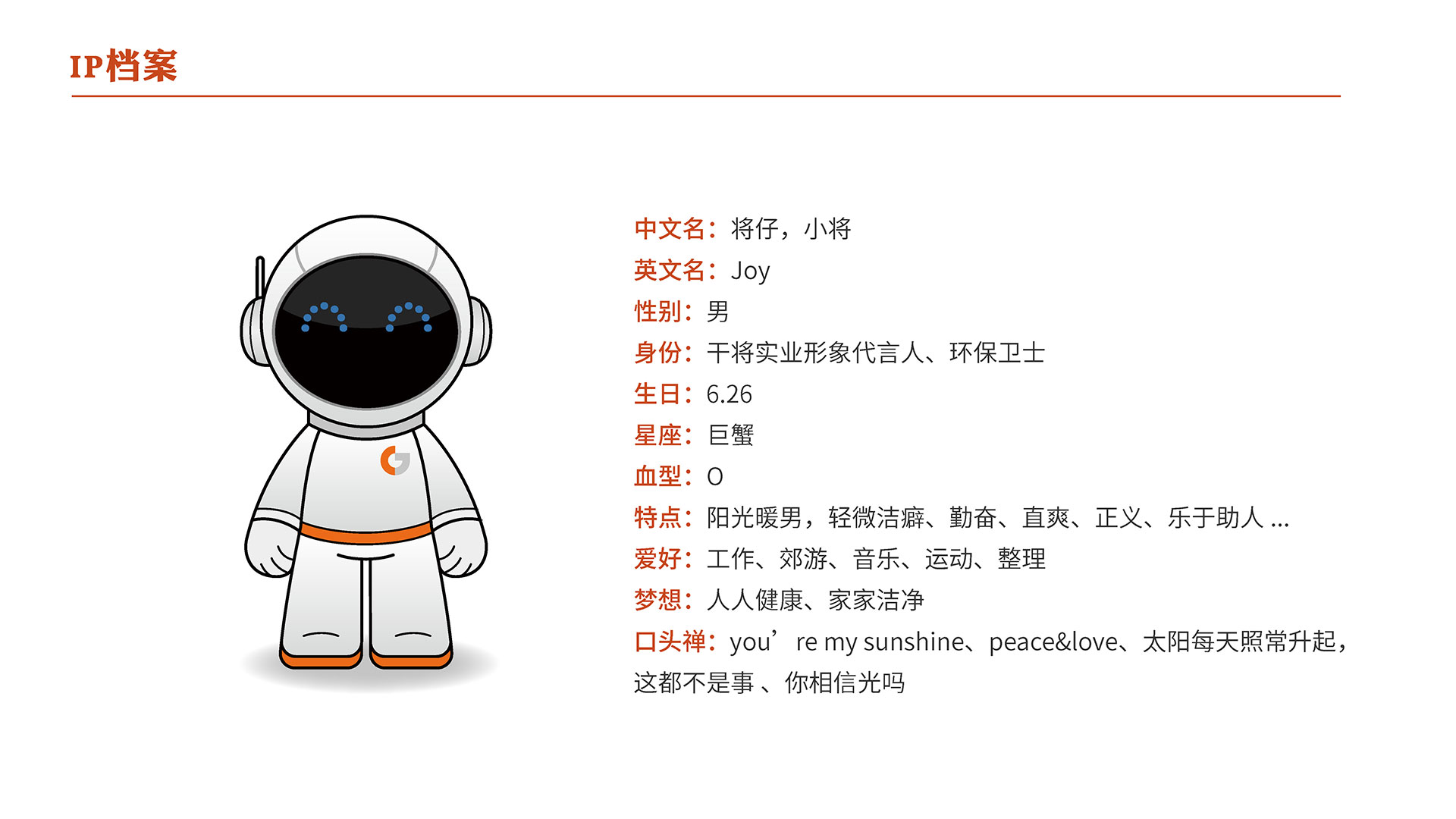 杭州干將新材(實(shí)業(yè))有限公司作為一家深耕健康科技領(lǐng)域的企業(yè),致力于通過(guò)IP形象傳遞品牌核心價(jià)值,強(qiáng)化市場(chǎng)認(rèn)知。石特廣告基于企業(yè)“健康、科技、陽(yáng)光、安全”的核心理念,打造了一款兼具守護(hù)者氣質(zhì)與未來(lái)科技感的IP形象,旨在通過(guò)擬人化設(shè)計(jì)拉近與消費(fèi)者的情感距離,提升品牌辨識(shí)度與市場(chǎng)競(jìng)爭(zhēng)力4。該IP形象以“宇宙太空人”為原型,結(jié)合環(huán)保、安全、創(chuàng)新等關(guān)鍵詞,賦予其“守護(hù)美好生活”的使命,并計(jì)劃應(yīng)用于產(chǎn)品包裝、宣傳物料、線上傳播等多場(chǎng)景,助力品牌從功能性輸出轉(zhuǎn)向情感化共鳴。