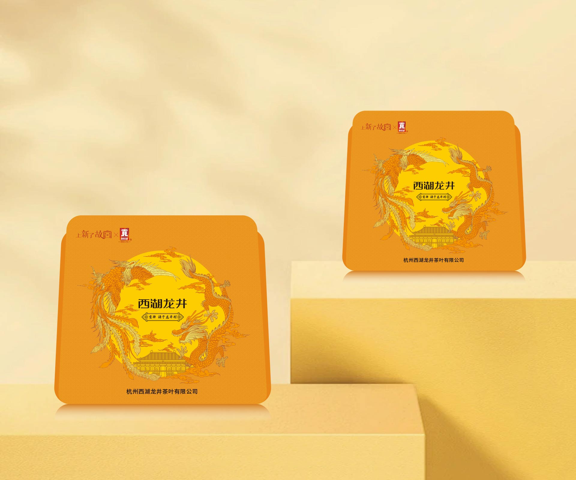 深入挖掘西湖龍井與故宮文化的內(nèi)涵,提取二者核心元素。在色彩選擇上,采用故宮經(jīng)典的明黃色、朱紅色等彰顯皇家氣派,同時(shí)搭配西湖龍井的翠綠色,營(yíng)造出清新雅致又不失尊貴的視覺(jué)感受;紋樣設(shè)計(jì)融入故宮龍紋、祥云等傳統(tǒng)圖案,并結(jié)合西湖山水、龍井茶園等地域元素,將兩種文化巧妙融合,打造出兼具文化底蘊(yùn)與地域特色的包裝視覺(jué)形象。