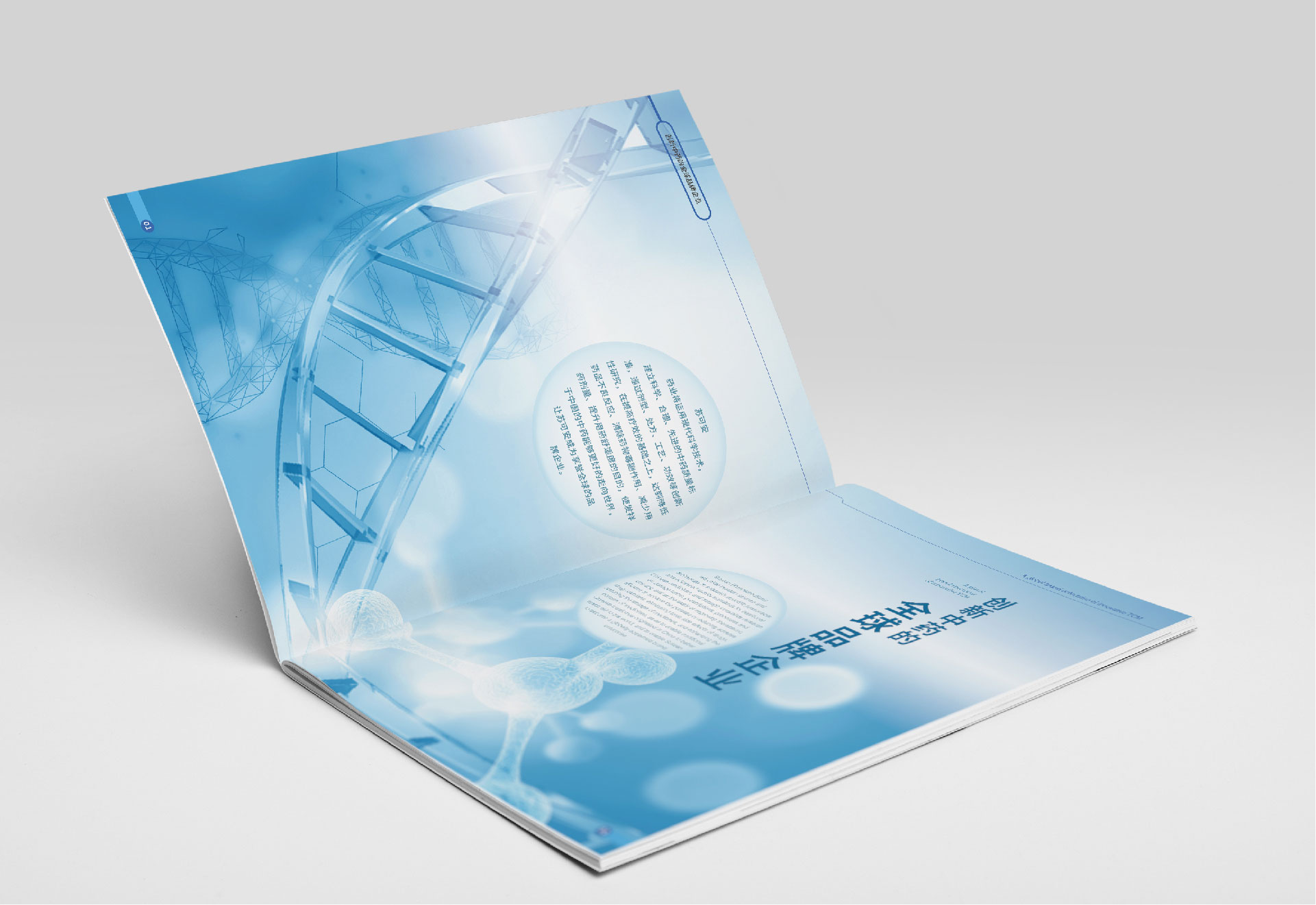 專業(yè)與人文兼具的視覺設(shè)計(jì): 設(shè)計(jì)風(fēng)格融合了醫(yī)藥行業(yè)的科學(xué)性(如運(yùn)用分子結(jié)構(gòu)、實(shí)驗(yàn)室等專業(yè)圖標(biāo)與圖像)與關(guān)愛健康的人文感(采用溫和、可信的色彩體系與版面布局)。通過專業(yè)的攝影與干凈的排版,營造出嚴(yán)謹(jǐn)、專業(yè)、可靠的視覺氛圍。