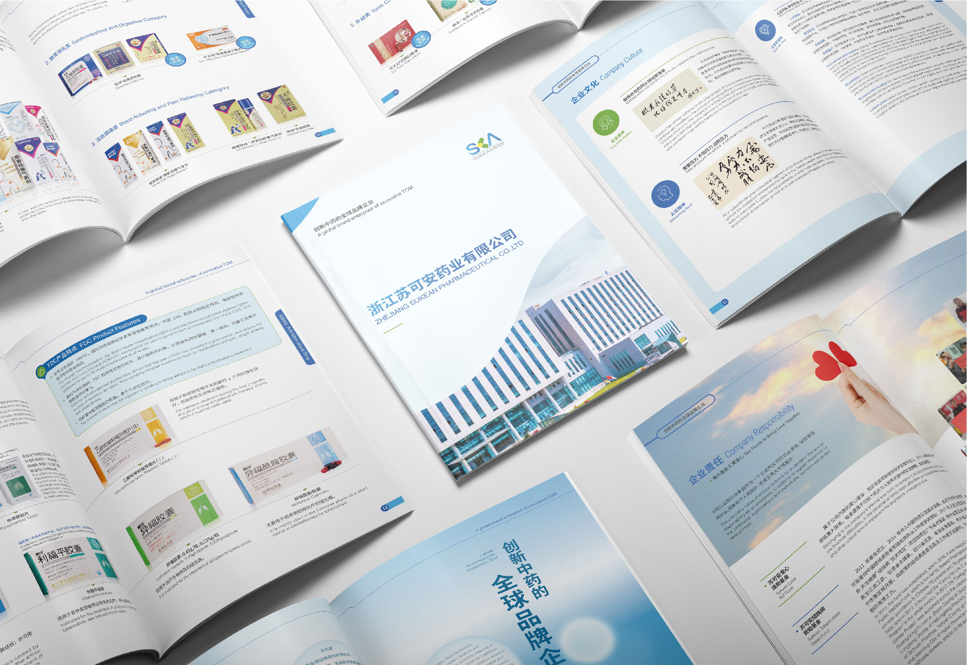 品牌形象統(tǒng)一與延展: 確保畫冊中的視覺元素(色彩、字體、圖形)與蘇可安藥業(yè)的整體VI系統(tǒng)高度統(tǒng)一,強(qiáng)化了品牌識(shí)別度。畫冊的高清圖片與核心文案可直接用于官網(wǎng)、微信公眾號等數(shù)字平臺(tái),形成線上線下統(tǒng)一的品牌形象輸出。