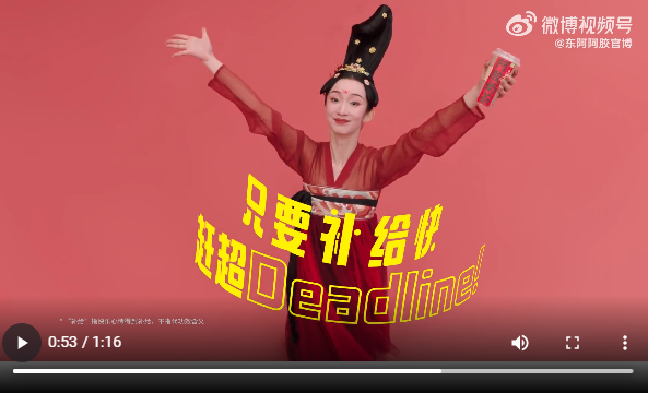 在奈雪東阿發(fā)布的TVC短片中,“壓力山大”的都市白領(lǐng)因?yàn)橐槐⒛z奶茶,橫掃疲態(tài)穿越成千年前元?dú)鉂M滿的唐宮仕女,詼諧的鏡頭語言既彰顯了兩個(gè)品牌對(duì)阿膠歷史的傳承,也傳遞出新時(shí)代“輕松養(yǎng)生”的健康觀念,生活忙碌也要記得關(guān)愛自己,一杯奶茶也可以隨時(shí)隨地撒個(gè)“膠”,小“補(bǔ)”一下。