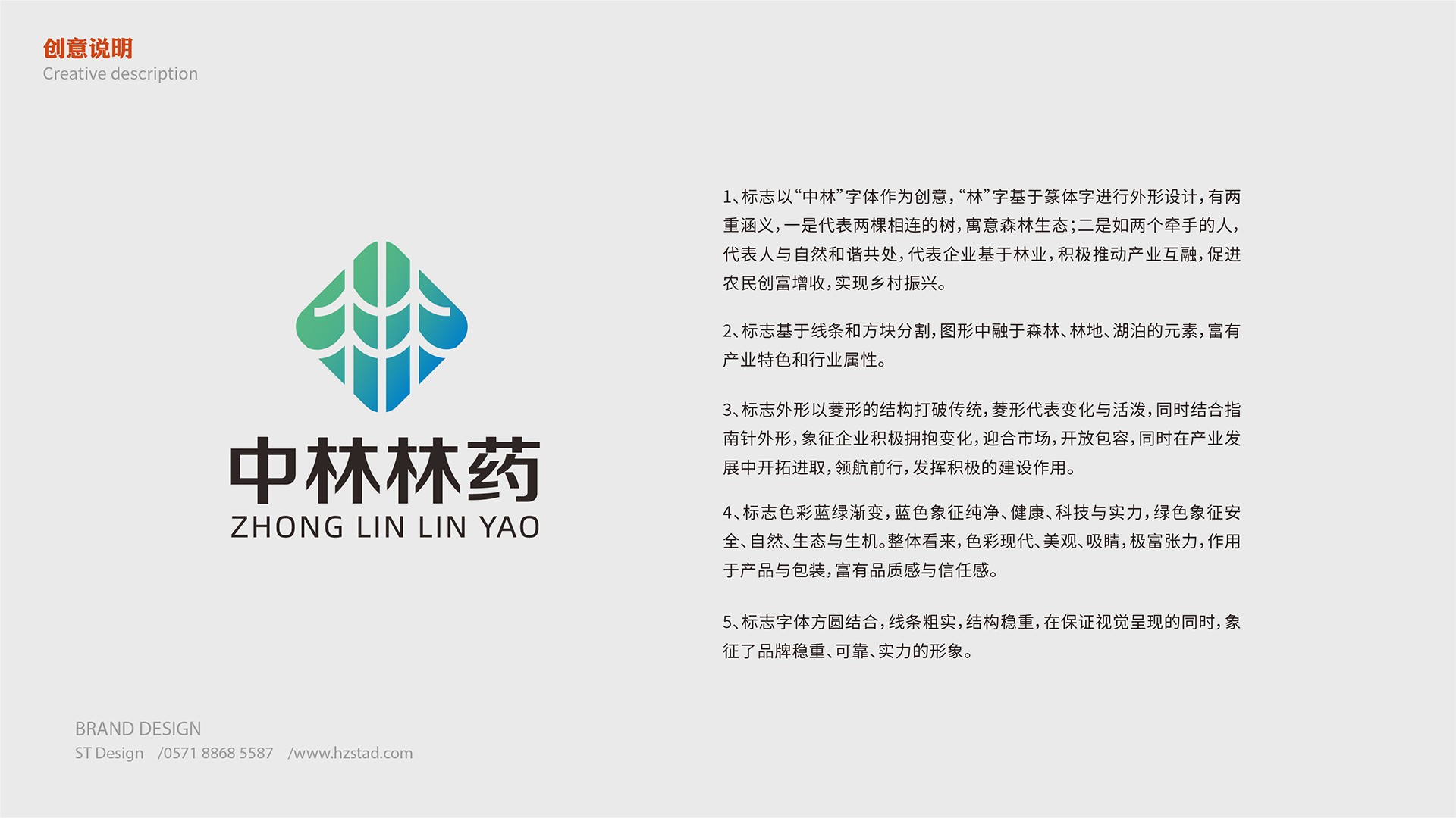 標(biāo)志以“中林”字體作為創(chuàng)意,林字基于篆體字進(jìn)行外形設(shè)計(jì),有兩重涵義,一是代表兩棵相連的樹,寓意森林生態(tài);二是如兩個(gè)牽手的人,代表人與自然和諧共處,代表企業(yè)基于林業(yè),積極推動(dòng)產(chǎn)業(yè)互融,促進(jìn)家民創(chuàng)富增收,實(shí)現(xiàn)鄉(xiāng)村振興。