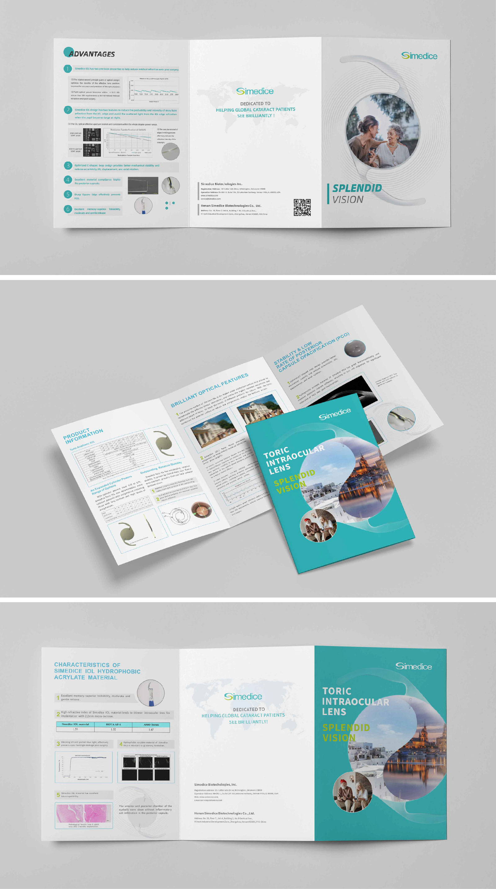 這是一款介紹人工晶體的宣傳折頁,通篇要以英文為主,為能著重突出產品特點、使用方法等方面,因此在內容上多處以圖片、表格的形式對產品細節進行闡述,圖文并茂,連貫性強,易于理解;在色彩上,以企業標準色為主,設計風格和諧統一,便于宣傳。