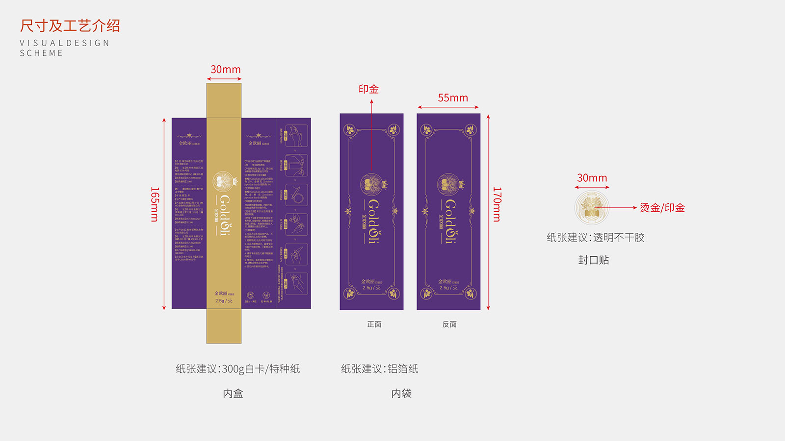 石特在創意思考之前,針對品牌進行全維調研與洞察,對現有包裝進行全面診斷分析,提煉出產品核心主張——每個女人都是自己的公主,并以此為發散點,以公主的IP人物形象進行畫面創作,同時包裝畫面突出風格鮮明的西班牙王室元素,加強產源地背書及產品核心賣點凝練。包裝運用女性紫與尊貴金的色彩進行渲染,時尚醒目,記憶點十足。細細品味,包裝處處體現尊貴與呵護,整體來看,包裝解決了金歐麗品牌與受眾利益訴求之間的溝通不順的問題,以市場化、差異化的表現手法將品牌展現的淋漓盡致,獲得客戶一致好評!