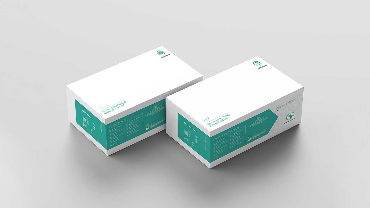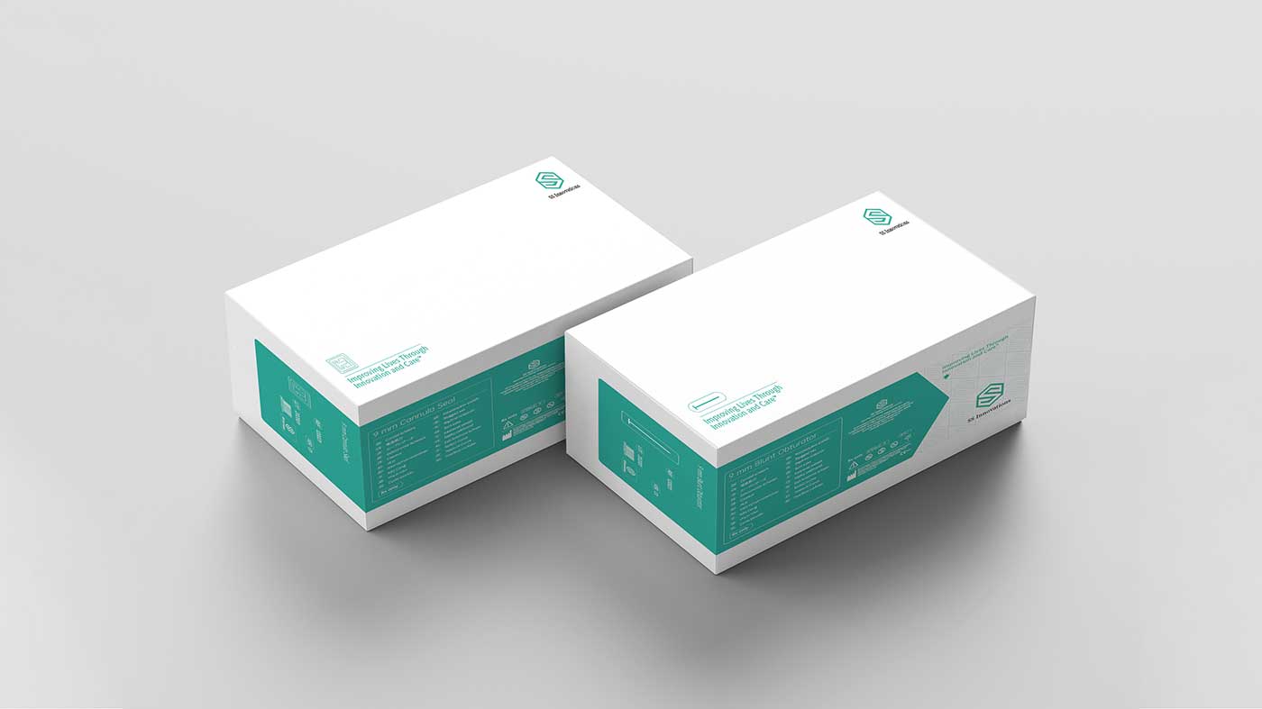 此次醫療器械包裝設計重點策劃術創機器人公司手術器械產品多規格,多型號的解決方案。石特為其量身策劃設計了兩款通用包裝盒型,分別裝置鈍性閉孔器和插管產品和一次性套管座和一次性的鈍性閉孔器產品;整體設計延續前期打造的主要形象元素,使其保持公司品牌形象的統一性。