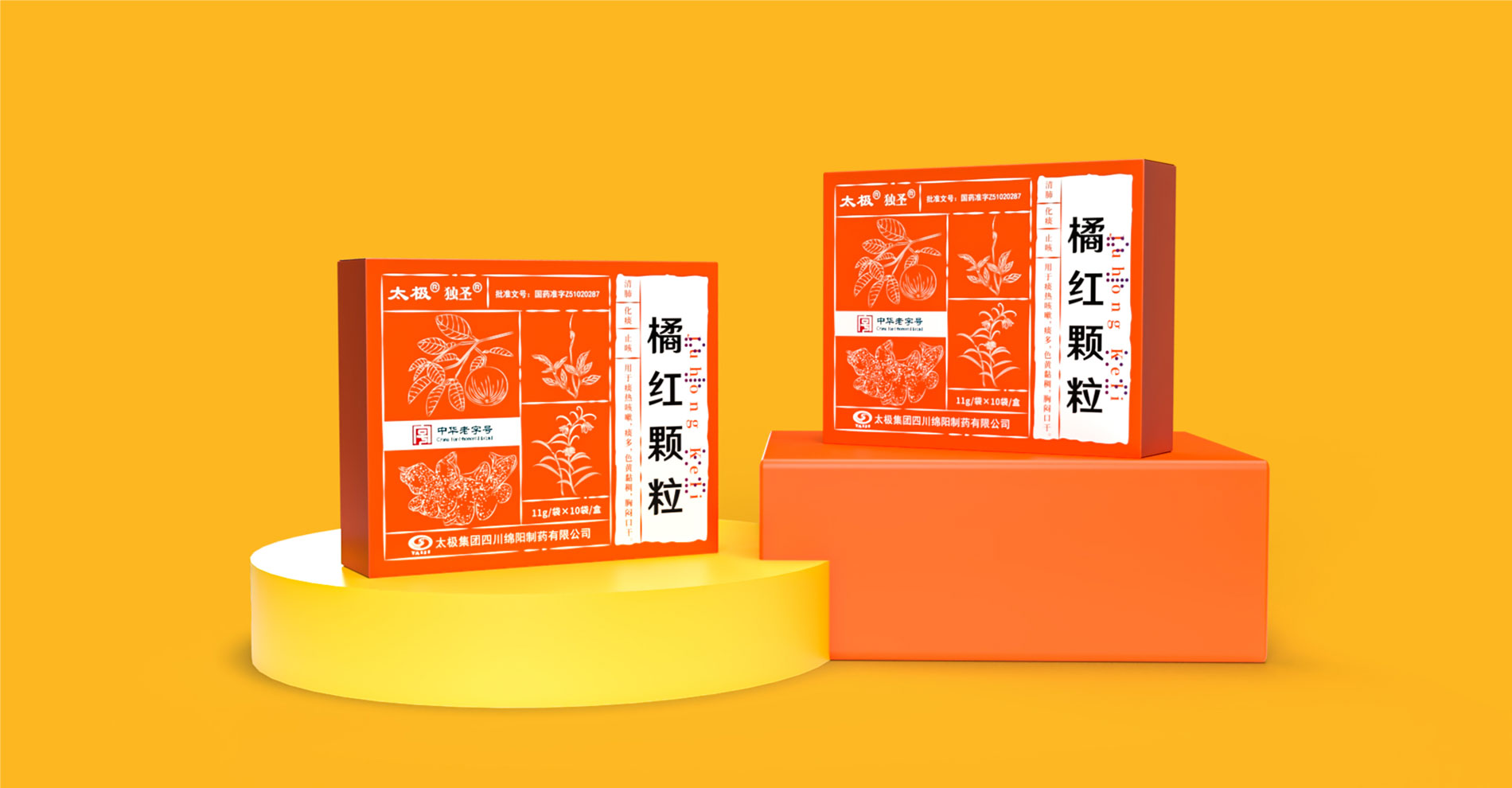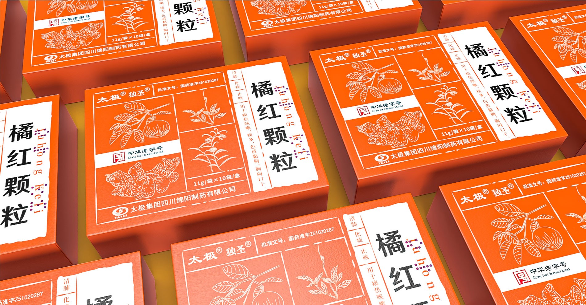 “橘紅顆粒”作為中華老字號的中成藥,其包裝設計充分融合了傳統與現代元素,既展現了藥品的深厚文化底蘊,又體現了現代審美觀念。在色彩選擇上,包裝采用了鮮明的橙色背景,象征著活力與健康,同時也與中藥的溫暖屬性相契合。白色圖案和文字在橙色背景的映襯下更加醒目,使得包裝信息一目了然。