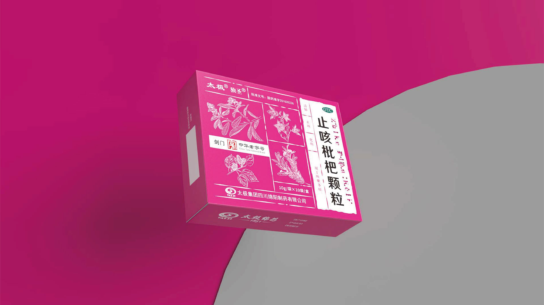 圖案設計上,包裝巧妙地運用了植物元素,一朵花、一片葉子和一個果實的組合,不僅美觀大方,而且寓意著中藥來源于自然、回歸自然的理念。這些圖案與“橘紅顆?!钡拿Q相呼應,強化了產品的中草藥特性。