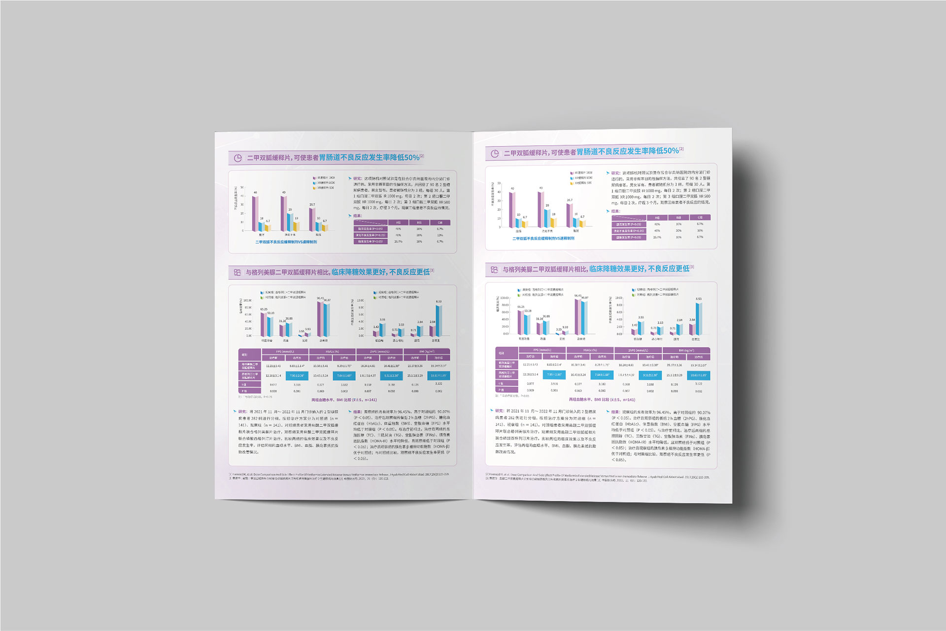 折頁:封面聚焦“國家集采中標”標識與藥品名稱,內(nèi)頁通過圖表對比傳統(tǒng)藥物與緩釋片的代謝差異,直觀展示“降糖更平穩(wěn)、副作用更低”的優(yōu)勢。
