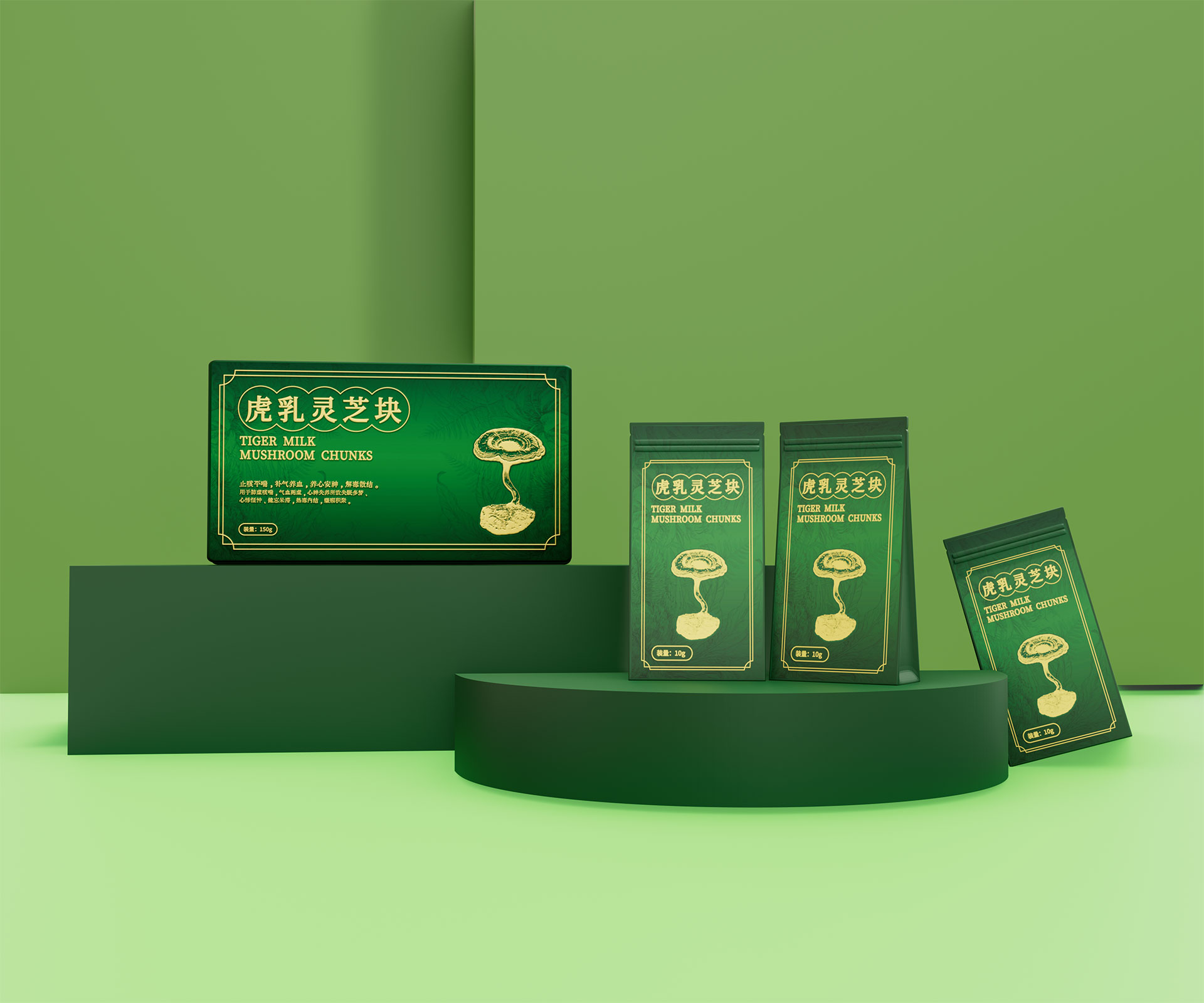 • 文化手冊集成:在包裝內部嵌入一張精制的中英文雙語手冊,以圖文并茂的方式講述虎乳靈芝的發現傳說、生長環境、鑒別要點與養生文化,將包裝轉變為文化載體,提升品牌內涵與消費者教育價值。