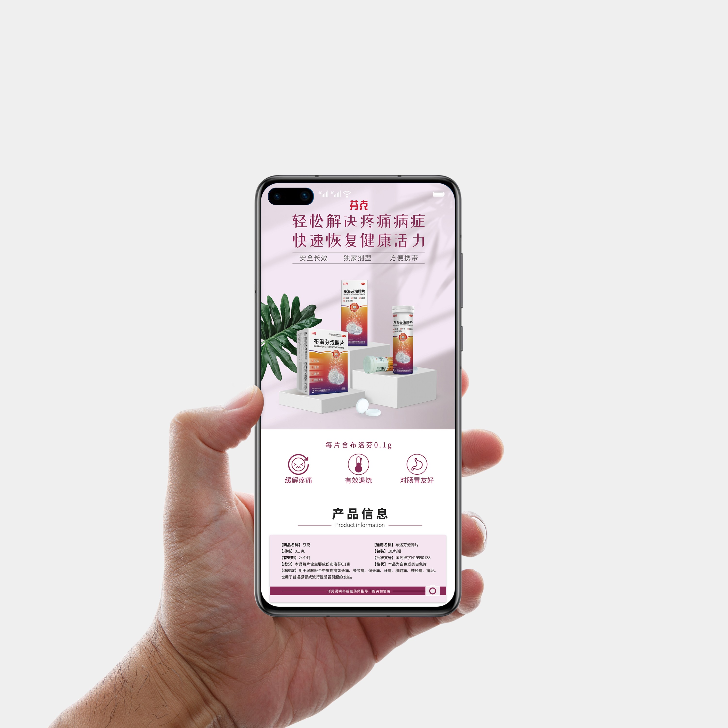 公司了解到目前市場上通用的“布洛芬”藥物多為膠囊狀,<span style="font-family:"">而膠囊形態(tài)的藥物在服用后需經(jīng)過一段時間才能發(fā)揮藥效。為能更好更快發(fā)揮藥效,公司積極創(chuàng)新,對旗下“芬克”牌布洛芬進行全面升級,推出可迅速溶入水的泡騰片。升級后的包裝及宣傳物料急需重新設(shè)計,因此找到石特團隊。